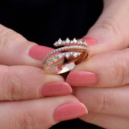 14 Ayar Altın Üç Sıra Taşlı Yüzük